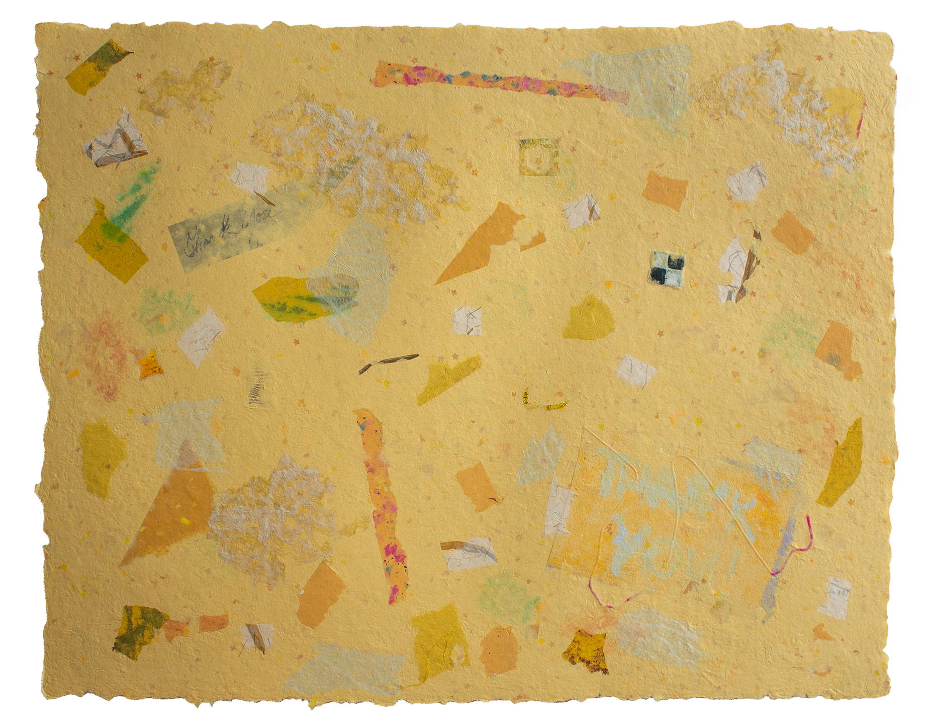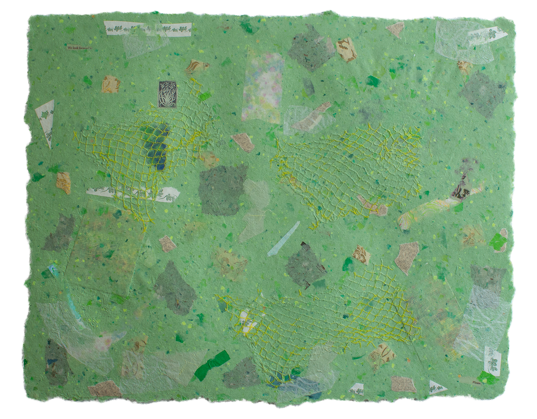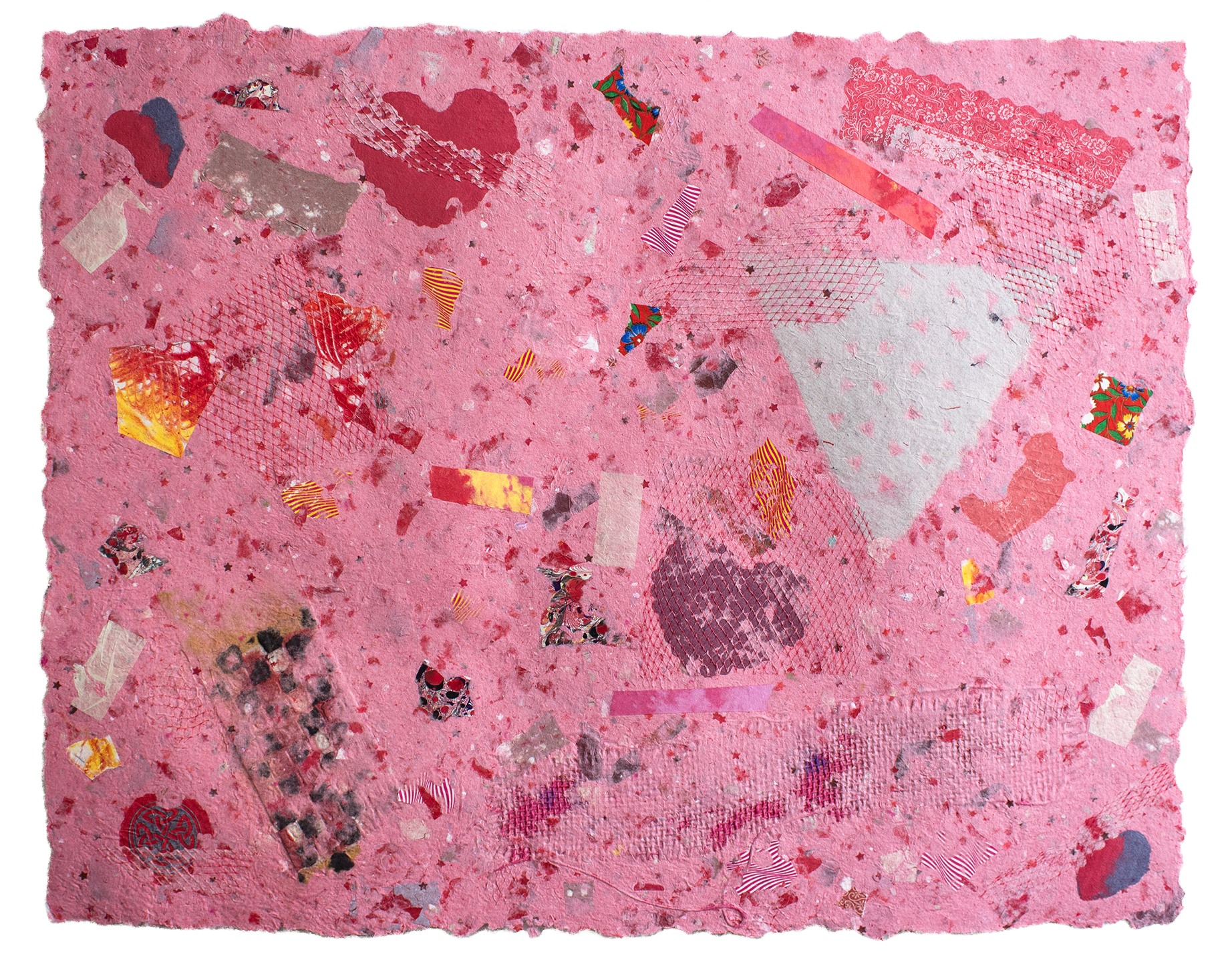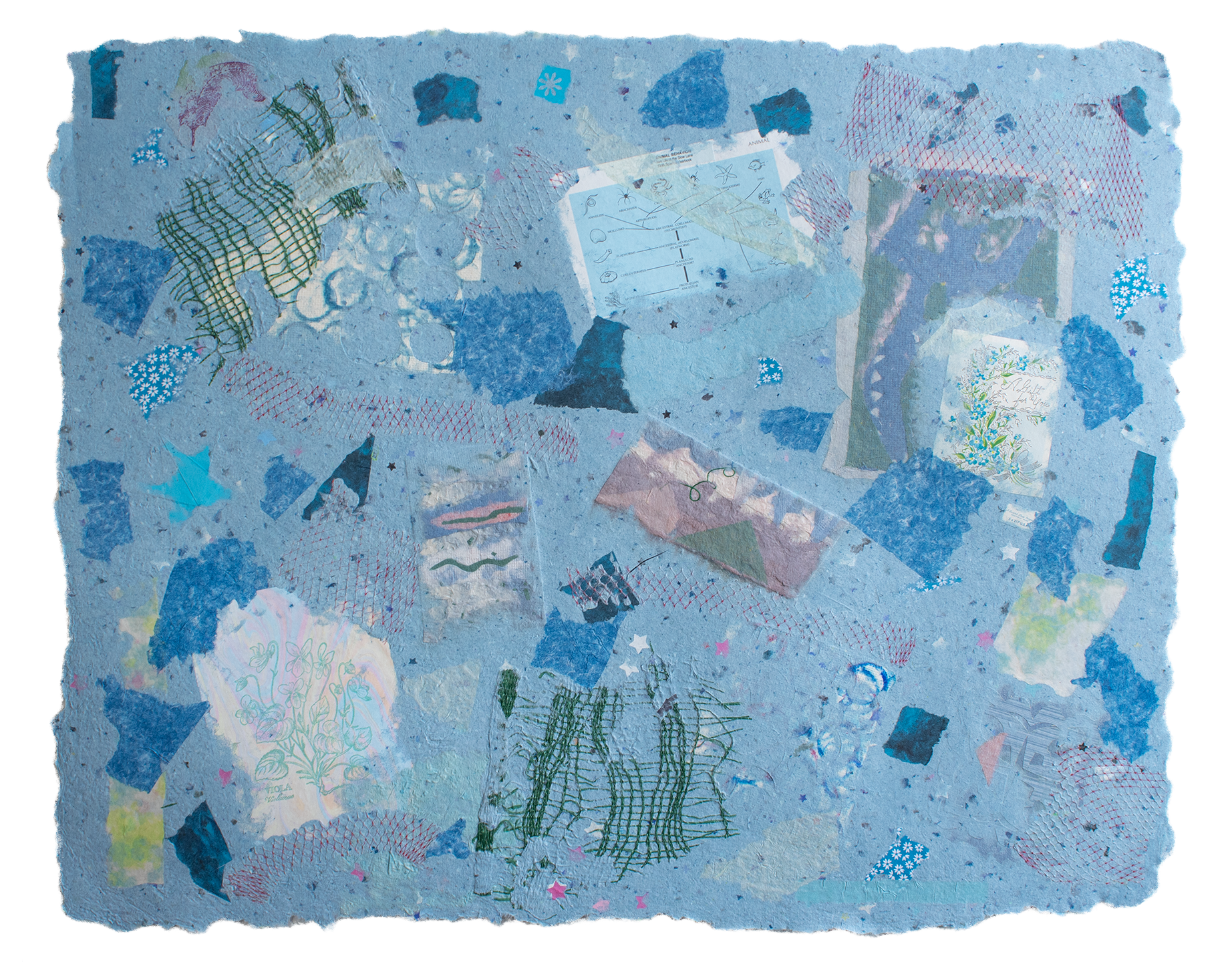 Paper assemblage with mixed fibers and found materials